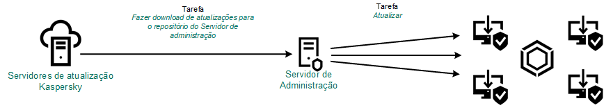 O pacote de atualização é distribuído a computadores clientes pela tarefa Atualização do Kaspersky Endpoint Security. Você pode criar um número ilimitado de tarefas de atualização para cada grupo de administração.