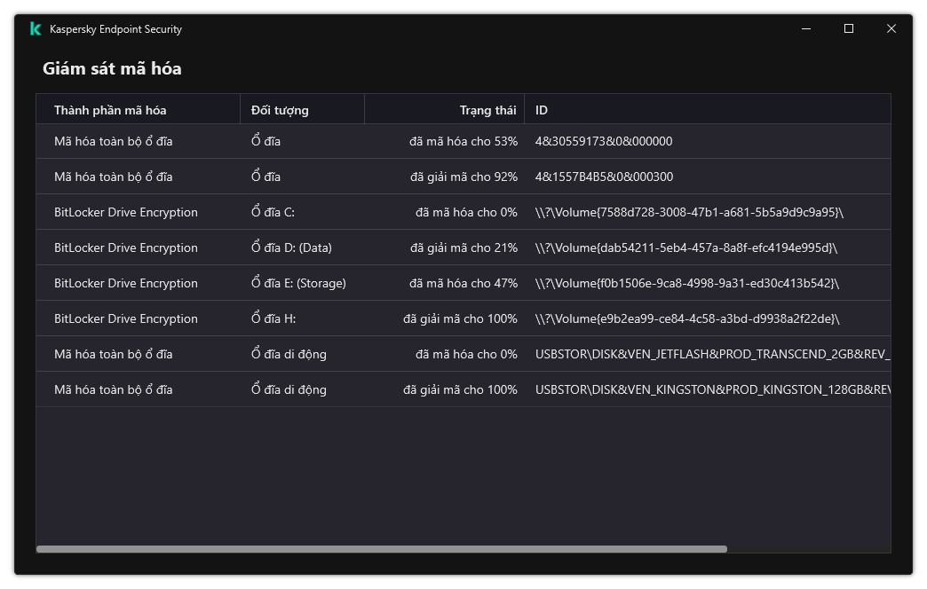 Bạn có thể sử dụng công cụ Giám sát mã hóa để kiểm soát quá trình mã hóa hoặc giải mã ổ đĩa trên máy tính của người dùng. Bạn có thể chạy công cụ Giám sát mã hóa từ cửa sổ chính của ứng dụng.