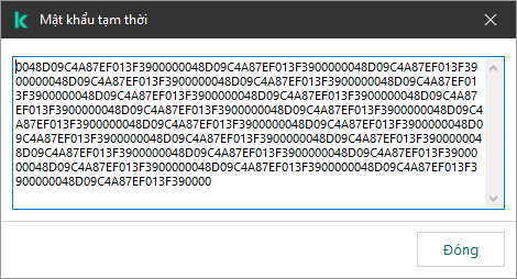 Một mật khẩu tạm thời có thể được sử dụng để cấp quyền truy cập tạm thời đến Kaspersky Endpoint Security cho một máy tính riêng biệt ngoài mạng doanh nghiệp. Việc này là cần thiết để cho phép người dùng thực hiện một hành động bị chặn mà không nhận thông tin tài khoản KLAdmin. Để sử dụng một mật khẩu tạm thời, máy tính phải được thêm vào Kaspersky Security Center.