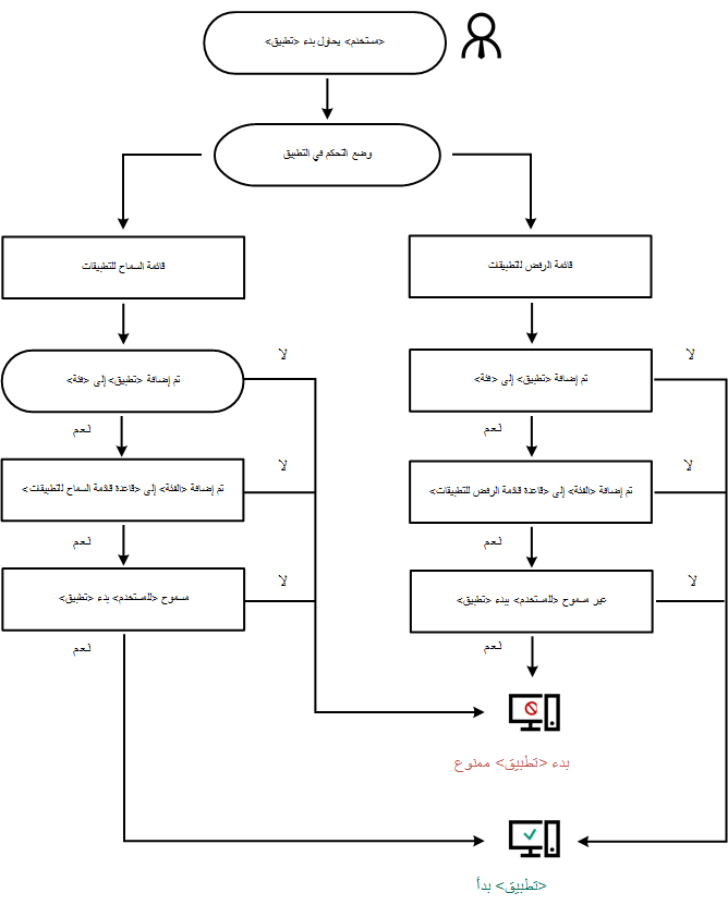 يستخدم Kaspersky Endpoint Security خوارزمية لاتخاذ قرار بشأن تطبيق (انظر الشكل أدناه).