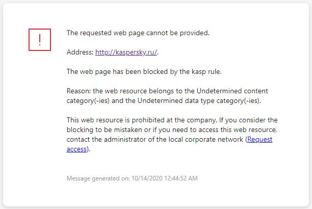 Web Control manages users' access to web resources. This helps reduce traffic and inappropriate use of work time. When a user tries to open a website that is restricted by Web Control, Kaspersky Endpoint Security will block access or show a warning (see the figure below).