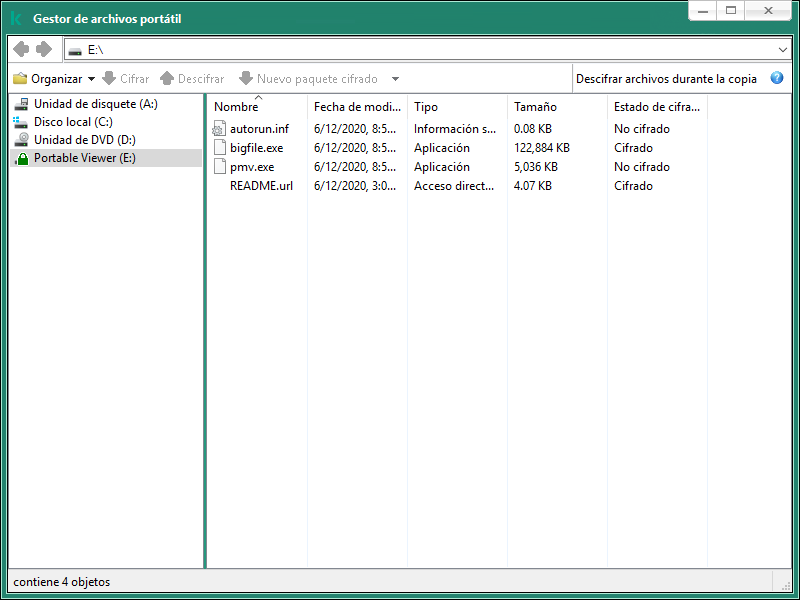 Modo portátil para acceder a archivos cifrados de unidades extraíbles