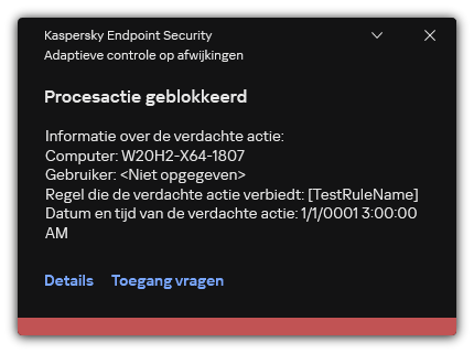 Als een regel tijdens de training niet één keer is geactiveerd, zal Adaptieve controle op afwijkingen de acties die zijn gekoppeld aan deze regel als niet typisch beschouwen. Kaspersky Endpoint Security blokkeert dan alle acties die aan die regel zijn gekoppeld.