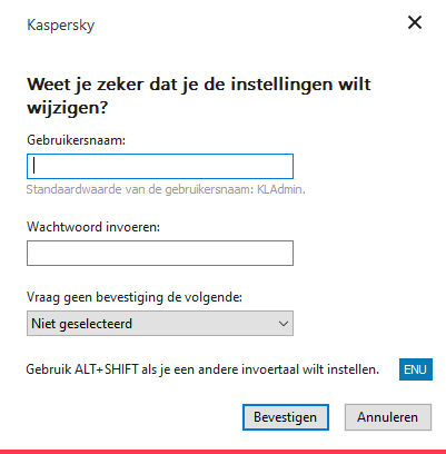 Vraag van Kaspersky Endpoint Security om een wachtwoord voor de toegang in te voeren