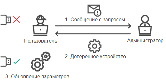 Если вам необходимо предоставить временный доступ к заблокированному устройству, а добавить устройство в список доверенных невозможно, вы можете предоставить доступ к устройству в офлайн-режиме. Таким образом, вы можете предоставить доступ к заблокированному устройству, если у компьютера отсутствует доступ к сети или компьютер находится за пределами сети организации.