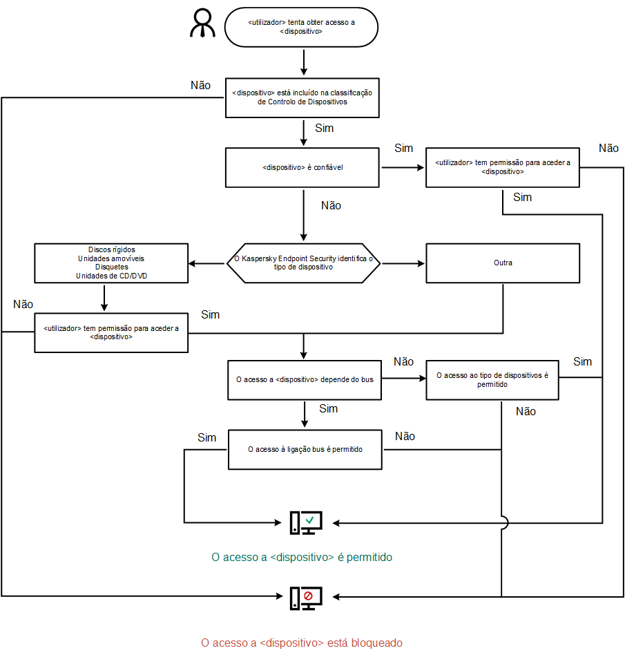 O Kaspersky Endpoint Security toma uma decisão sobre se é permitido o acesso a um dispositivo depois do utilizador ligar o mesmo ao computador (ver figura abaixo).