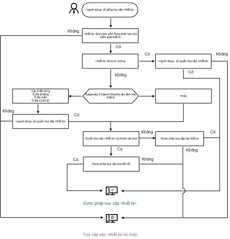 Kaspersky Endpoint Security sẽ đưa ra quyết định về việc cho phép truy cập đến một thiết bị hay không, sau khi người dùng kết nối thiết bị đến máy tính (xem hình bên dưới).