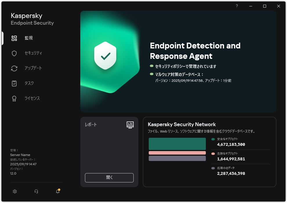 EDR Agent のメインウィンドウ