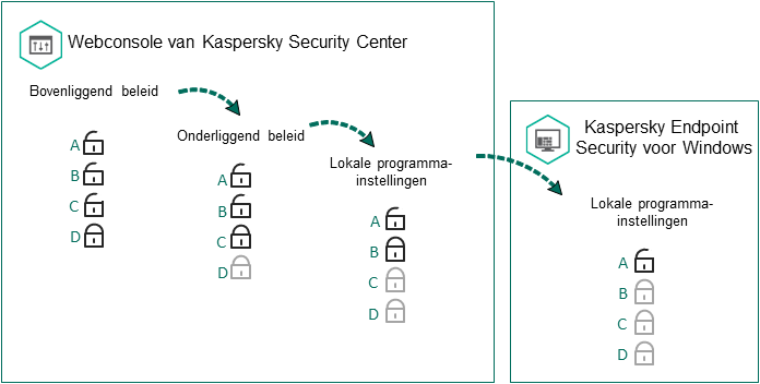 Een beleid is een verzameling van programma-instellingen die voor een beheergroep zijn gedefinieerd. U kunt meer dan één beleid configureren met verschillende waarden voor een programma. Een programma kan met verschillende instellingen voor verschillende beheergroepen worden uitgevoerd. Elke beheergroep kan een eigen beleid voor een programma hebben.