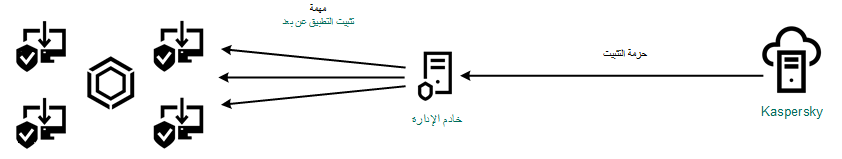 حزمة التثبيت هي مجموعة من الملفات التي تم إنشاؤها للتثبيت عن بعد لتطبيق Kaspersky عبر Kaspersky Security Center. تحتوي حزمة التثبيت على مجموعة من الإعدادات المطلوبة لتثبيت التطبيق وتشغيله فورًا بعد التثبيت. يتم إنشاء حزمة التثبيت باستخدام الملفات ذات الامتدادات .kpd و.kud في حزمة توزيع التطبيق. تعد حزمة تثبيت Kaspersky Endpoint Security ميزة شائعة لجميع الإصدارات المدعومة لأنظمة تشغيل Windows وأنواع بنية المعالج.