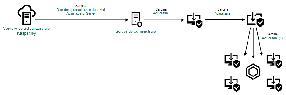 Kaspersky Endpoint Security acceptă următoarele scenarii pentru actualizarea bazelor de date și a modulelor aplicației: