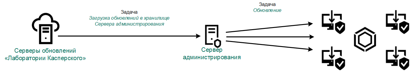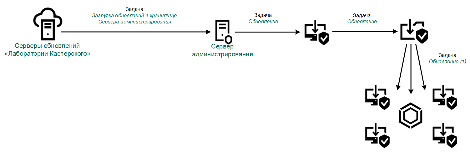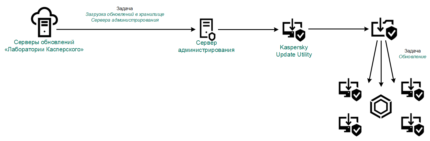 Kaspersky Endpoint Security поддерживает следующие схемы обновления баз и модулей приложения: