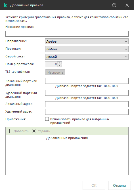 Kaspersky Endpoint Security применяет критерии срабатывания по правилу логического И.