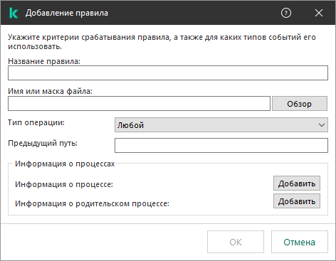 Kaspersky Endpoint Security применяет критерии срабатывания по правилу логического И.