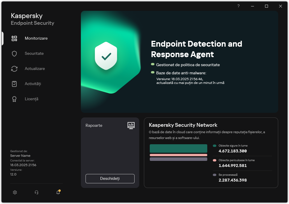 Fereastra principală a EDR Agent
