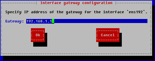 [Interface gateway configuration]ウィンドウが表示されます。